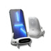 Son design lui permet d’accueillir tous les téléphones portables dont la taille mesure entre 4.5 à 11 pouces et de le positionner en mode portrait ou paysage, ce qui permet de recharger votre téléphone tout en visionnant des vidéos. Ce chargeur sans fil est compatible avec tous les téléphones récents (voir liste ci-dessous) et est alimenté par un câble Usb-c à brancher directement sur le port situé à l’arrière.