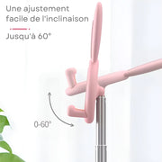 Avec ses oreilles de lapin et sa finition soignée, ce support combine esthétisme et utilité. Son bras réglable en hauteur (22.7 à 31.7 cm) permet d’ajuster votre angle de vue pour un confort optimal, que ce soit en mode portrait ou paysage.